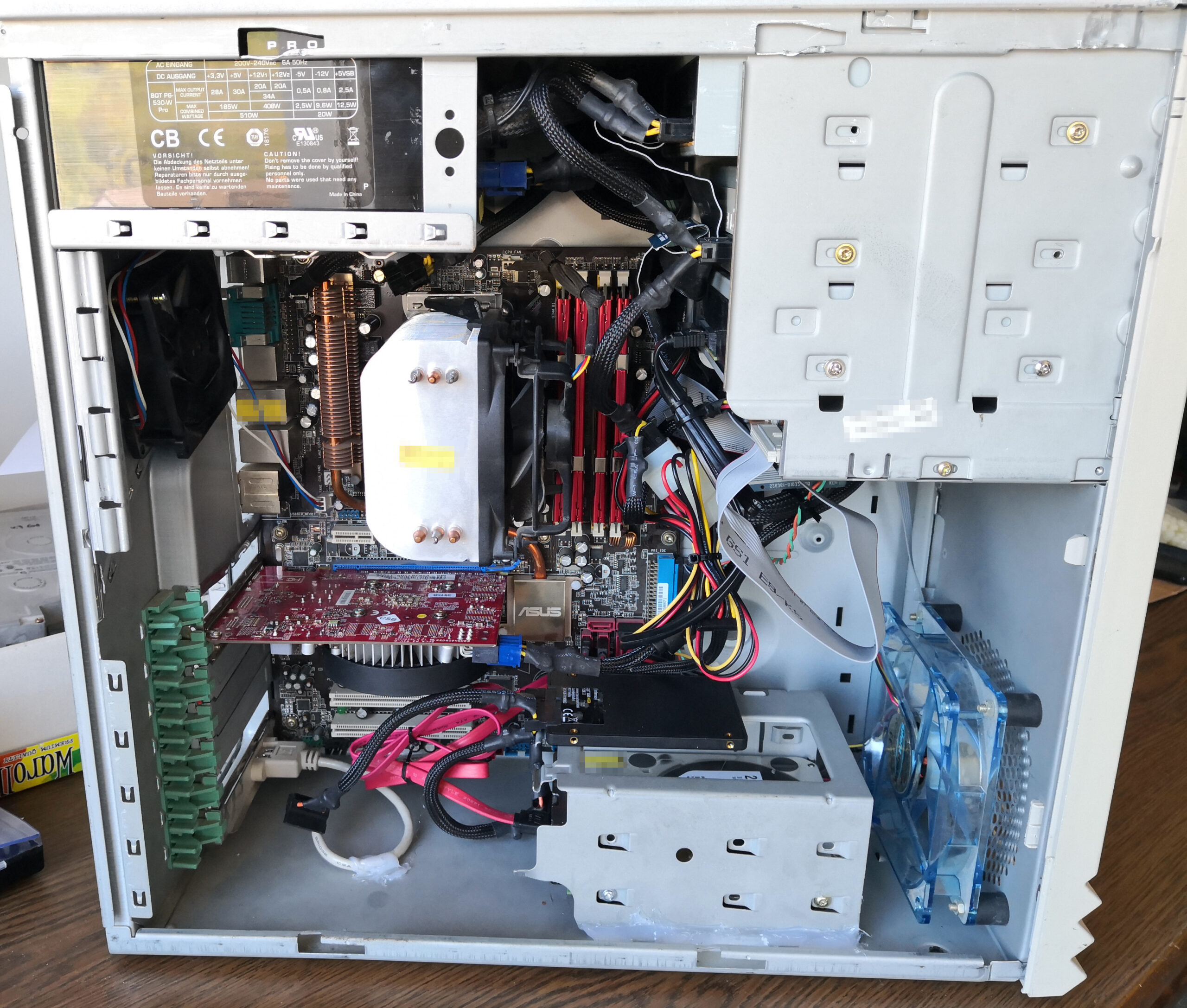 When the thing became a little unreliable and dated (no hardware AES, too little RAM) I had the computer shop build a new one in my old case retaining HDDs, optical drive and weak graphics card (which was later replaced by an overpowered1 NVIDIA GeForce GTX 1050 Ti in the new computer).